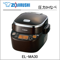 こちら、象印 圧力IH鍋 EL-MA30-TA ブラウンです。 圧力鍋がIHという頭脳をもった新しいカテゴリーの調理家電です。 圧力鍋を初めて使ったときの、スピーディーで柔らかな料理の仕上がりには 感動したものですが果たしてそこにIHが加わるとどうなってしまうんでしょう。 ごはんやパンはもちろん、麺も茹でられて、スイーツやデザートもOK。 その他多彩なレシピも。 IH調理家電といえば、IH炊飯器がまず思い浮かびますが、 やはりIH炊飯器で炊いたご飯はひと味違いまし...