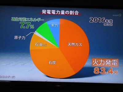 『脱炭素社会』シリーズ最終回・・・ NHKクローズアップ現代を見逃した方のために。 欧州各国では・・・ 原子力発電所を廃止する国が多くなりました。 のにも関わらず、日本だけが原発再稼働・火力発電は 世界に売り込む姿勢である。←昨日の記事へクリック 現在・・・ 国内の発電事情は、火力発電で83.4%を賄っている。 国内での再生可能エネルギーは、わずか7.7%しかないが。。 ドイツでは2015年の段階で既に27.7%を再エネで賄っている。 現在では優に30%を超えているかも知れない。 ...