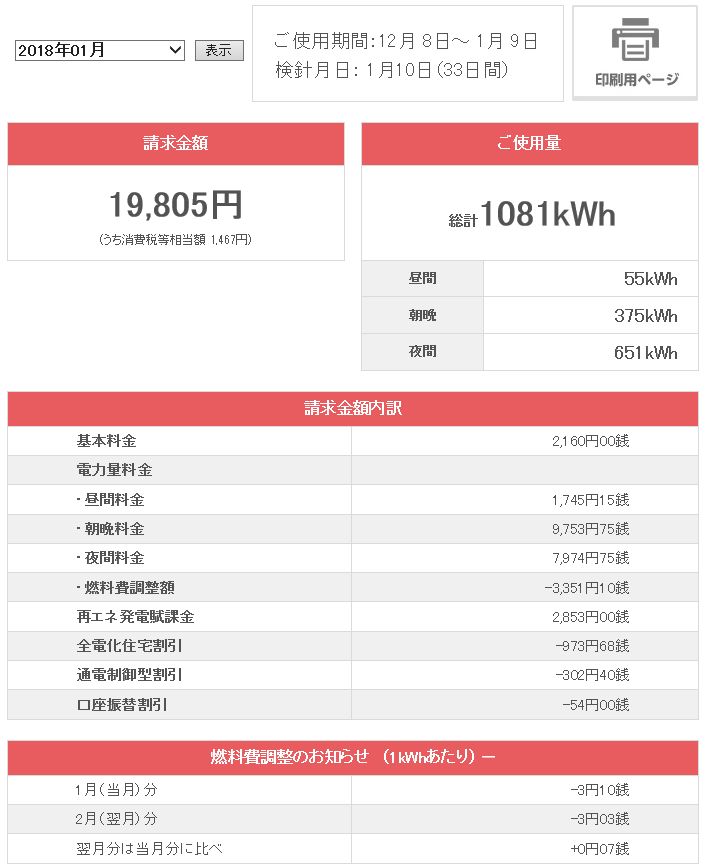 JUGEMテーマ:太陽光発電 2018年1月分(実際は12月分です)の検針記録が届きました。 うちの場合,検針期間は毎月8〜10日から次月7〜10日までの期間となります。今月(1月分)は12月8日〜1月9日までの33日間となりました。 web検針記録 先月は29日間で今月は33日間の検針なので単純比較はできませんが,計算が面倒なので単に数値で比較します。 購入電力量は1081kWh。12月が603kWhでしたのほぼ倍近く増えました。日割りにしてみると11月20.8kWh...