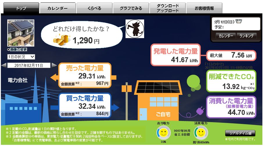太陽光発電日記「あしたも晴れるといいな」 | 2017.02.12 Sun 23:58