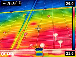 太陽光発電を・・・ 搭載しておられる皆さんはメンテナンスしてますか?? まさか営業マンから・・・ 「搭載したらメンテなんか必要ありません」 なんて?言われていませんよね! 葉っぱが張り付いても・・・ 電柱の陰になっていても、隣家の家の陰になったり 鳥の糞が張り付いていたり、そんなことありませんか?? サーモグラフィーで・・・ 確認してみると、鳥の糞がある付近が高温になっています。 そんな場合は・・・ 極端に発電量が期待できなくなります。 常に陰になっていると、電流が配線を「迂回」するので 一部の配線...