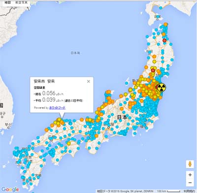 気温によって・・・ 左右されるのでしょうか? 今朝8時半頃の放射線量のグラフから 島根原発の・・・ 付近で数値が上昇している様子がうかがえます。 これは、ホワイトフードさんが10分おきに出している画像。 ↑↑クリック お昼頃の数値は・・・ 鳥取県庁付近でも、ずいぶんと数値が上がっています。 こんな心配を・・・ しなくても良いように、私たちは太陽光発電で 再生可能エネルギーを増やすよう取り組んでいます。 刻々と変わる・・・ 「空間線量」の画像を見ていると、 子供や孫たちに「負の遺産」を...
