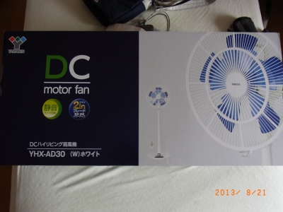 JUGEMテーマ:便利な家電お盆前に購入した扇風機が本日到着しました。山善のYHX-AD30山善のオンラインショップで1000円引きで購入できました。組み立てるとこんな感じです。とにかく音が静かです。110cmまで伸ばすことも出来るので、冬場にはサーキュレーターとしても使えそうです。しかも、使用電力は26W。今までの扇風機は44Wって事で、今までの半分で済みます。と言うか、今までの扇風機12年も使っていたのね。静岡勤務時代に購入した覚えがあります。しばらくは2台体制で、部屋の通気を良くするために使います。