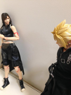 プレイアーツ改お遊び劇場。〜ハッピーバースデークラウド〜編ティファ「お帰りクラウド。お仕事お疲れ様。」 クラウド「疲れた…」 ティファ「誕生日おめでとう。もうすぐ日付け変わっちゃうけど、間に合ってよか、きゃっ」 クラウド「ティファ…!ありがとう…」 ティファ「デンゼルとマリンもお祝いするんだって待ってたんだけどね。寝ちゃったんだ」 クラウド「気持ちだけで嬉しいよ」 ティファ「ケーキいつものアメリカンチェリーパイよ」 クラウド「相変わらず美味しそうだ」 (バースデーケーキの小物持ってないの...