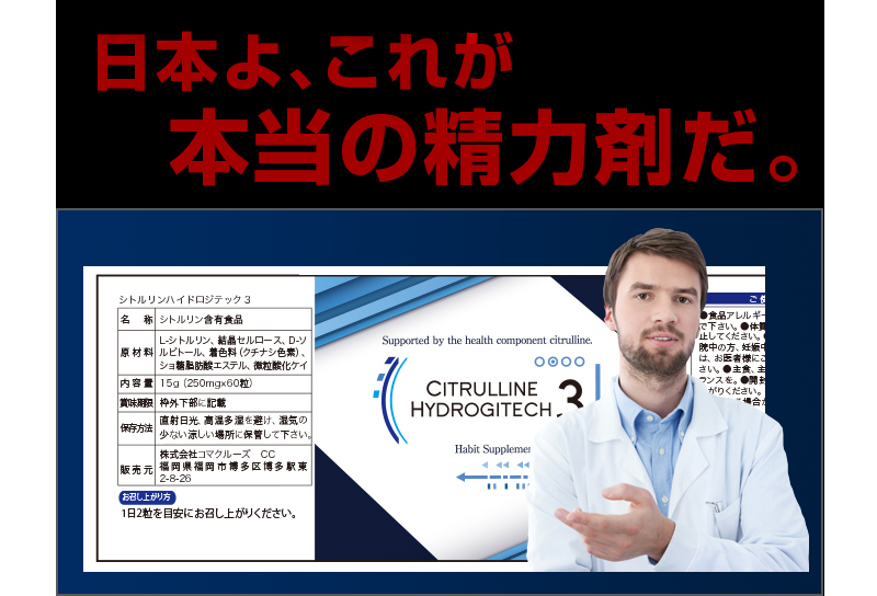 JUGEMテーマ:男性用サプリ(精力剤等)・グッズの情報 【CITRULLINE HYDROGITECH3(シトルリン ハイドロジテック3)】日本よ、これが本当の精力剤だ!!! ヨーロッパより遂に日本上陸!!! 失敗しない増大はシトルリンのみ! あまりの効果に、 女性が使うとクリ●リスが巨大化する例まで!? <シトルリン ハイドロジテック3公式サイトはこちら> <シトルリン ハイドロジテック3口コミはこちら> 62歳 男性 諦めなくてよかった! 自分のボリュームのなさに情けなさを 感じていました。 正直若いことから自信...