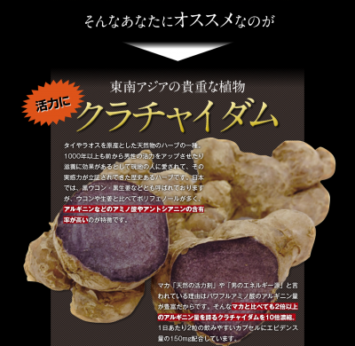 JUGEMテーマ:男性用サプリ(精力剤等)・グッズの情報 活力あふれる毎日のために【クラチャイダムBLACK-MAX】 株式会社モイスト 〒136-0071 東京都江東区亀戸1-4-2 健康食品販売 白土 八千代 1500万円 平成18年4月 40代、50代、60代の方、こんな悩みはございませんか? いざという時に役に立たない 年齢に衰えを感じている 体力だけでなく、気力、活力が低下していませんか? ...