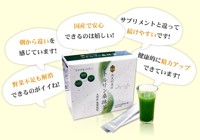 JUGEMテーマ:男性用サプリ(精力剤等)・グッズの情報 精力剤が続かない男性に人気の【大人の青汁シトルリン桑抹茶】 株式会社ウイッツジャパン 812-0011 福岡県 福岡市博多区 博多駅前 2-17-15 NPCビル3F 健康食品 長谷川 裕太 最近こんなことはないでしょうか? 活力がない気力がない、年齢のせいかとあきらめてしまう、 硬さ、勢い、持続性がない、 仕事や家庭でストレスを感じる サプリを飲んでも実感しない 妻との関係もイマイチ ご存知ですか?精力減退の原因! 男性は、35歳をすぎると、一気に男性ホルモ...