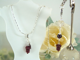 JUGEMテーマ:天然石 クリスタル パワーストーン 一月の誕生石はガーネットです。ザクロの実に似ている ことから、和名が「柘榴ざくろ石」と言います。 努力が実るといわれていることから、葡萄のカタチに したパーツで、ネックレスとキーホルダーにしました。 チェーンは40センチ葉っぱも取り付けました。 キーホルダーは、トップにガーネットインクォーツで、 ガーネットが内包されて生成された水晶です。 新しい事柄にチャレンジする方に勇気とやる気をもたらす 生命力・情熱の石です...