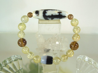 JUGEMテーマ:天然石 クリスタル パワーストーン 龍に乗った観音様を表す天珠白ベースです。 大願成就・学業成就・福運招来を叶えてくれると されています。 対面には、黒白天珠で、災厄や苦悩からその解決の反転 を導いてくれます。 三十三の姿に身を変えてきれいな水や疫病などに 効く薬湯などを携えてどこまでも飛んでいく観音様を 表しています。琥珀色の石は、オーラライト23です。 23種の鉱物が入り込んで生成された水晶で、あわせた 黄色の石は、ゴールデン・ラブラドライトです...