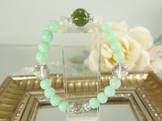 JUGEMテーマ:天然石 クリスタル パワーストーン トップが隕石ガラスのモルダバイトで、サイドが黒いベースに 美しいブルーのラブラドレッセンスが見えるブラックラブラドライト グリーンの8ミリ玉で連結されたブレスレットです。 モルダバイトは、隕石の衝突によって作られた天然ガラス ヒーリングの効果はパワーストーンのなかでもひときわ 高いとされております。ラブラドライトは、思い込みや 固まってしまった思考をほぐして新しい感覚や思考をとりいれて より自由な発想や行動へ導いてく...
