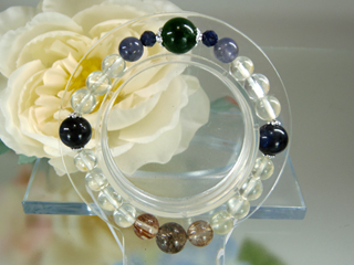 JUGEMテーマ:天然石 クリスタル パワーストーン トップに、クロムダイオプサイトをサイドにはブラックラブラドライト アイオライト(菫石)ゴールデンラブラドライトでつなげた ブレスレットです。 本来ダイオプサイトは、黒色で、カルシウムとマグネシウムを含む 鉱物なのですが、鉄分やクロムなどを含むことによって、このような 深い緑色に変化します。透明度もあり、エメラルドのような色合いが 魅力な知性と理性の石です。 理性と知性の石とされるのは、感情・行動・肉体のバランスを整える ...