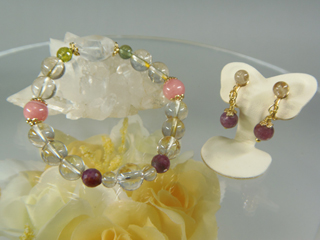 JUGEMテーマ:天然石 クリスタル パワーストーン ブレスレットのトップにつけたのは、幸運を呼び寄せる 星入り水晶ホランド鉱インクォーツといいます。 マダガスカルで産出される水晶で、現地では「幸運を 呼ぶお守り」とされ愛されている鉱石のひとつです。 太陽の石のペリドット・インカローズ・ルビーと ゴールドルチルクォーツで、とても華やかで上品な ブレスレットに出来上がりました。 ブレスに使ったルビーと同じもので、痛くないイヤリング もあわせて、星の瞬きのごとくビビットくる運命...