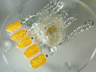 JUGEMテーマ:天然石 クリスタル パワーストーン バックにさげるチャームを作りました。 ゴールドとシルバーです。 プレス琥珀に蓄光ガラスのパーツをつけました。 バックにさげて太陽光にあたると光をためて、 暗闇でほのかな光が♪〜 こんな感じで、蛍のようです。 電池も必要ないです。エコソーラーのバックチャーム 精霊の宿る琥珀のバックチャームで売り出そうかな? 闇夜に光るので、キーホルダーなんかもバックの中で 探しやすいかもしれません。ヒマなモリオンマザーは、 ...