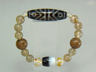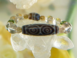 JUGEMテーマ:天然石 クリスタル パワーストーン 龍の目は六あるのだとか。 天珠のうちで龍眼天珠は、天珠の王とされる希少な天珠 です。コレクターなら一つは持ちたいと思うはずです。 四線虎牙天珠は虎四頭分の威力を持つ天珠 勝負強さにおいては、ぶっちぎりです。 虎四頭を龍が操縦している姿を想像してみましょう。 ルチルクォーツと隕石モルダバイトが美しい輝きを 添えてくれます。