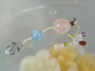 JUGEMテーマ:天然石 クリスタル パワーストーン 今日は、ストラップを製作しておりました。 ローズクォーツの大玉20ミリとアクアマリン それにアクアオーラーの天使を使いました。 チェーンに色とりどりのストーンをつけて、 綺麗な色合いのラブリーストラップです。 天使の色違いは、こちら ローズクォーツは桃水晶とも呼ばれるピンク色の水晶 アクアマリンは、幸せな結婚を表す三月の誕生石です。 幸せを呼び込むエネルギーが強く自由な心や発想を 育てて自己イメージを高く持つことが...
