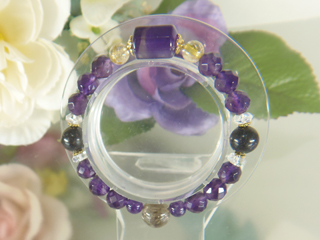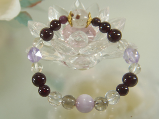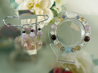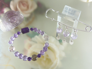 JUGEMテーマ:天然石 クリスタル パワーストーン 紫雲石とも呼ばれるラベンダー色のアメジスト 2月の誕生石のアメジストですが、紫からラベンダー グリーンまでカラーバリエーションが豊富なのも とても美しいアクセサリーとしては楽しいものです。 濃厚な紫色が魅力なウルグアイ産のアメジストを トップにサイドには、セイクリッドセブンのアメジスト ファントムタイプのものをカラーが調和してとても癒しの効果 があるブレスレットにいたしました。 右にあるのは、もっと薄い色合いのはか...