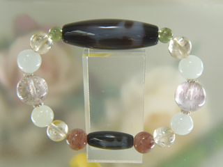 JUGEMテーマ:天然石 クリスタル パワーストーン 裏と表に二人の観音様が映しだされた双観音天珠です。 グリーンアパタイトと水晶・薄いグリーンの翡翠 セイクリッドセブン・ストロベリークォーツと、 サイズも16センチの腕周りにちょうど良い大きさになって います。 三十三のご利益があり、病気平癒や、多くの天珠が ありますが、この天珠は、観音様が薬湯が入った右手 にもっていて、ガンを封じる天珠とされています。 誰でもガンになる可能性は高いとはされていますが、 り患して...