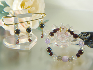 JUGEMテーマ:天然石 クリスタル パワーストーン 一月の誕生石は、ガーネット ガーネットインクォーツをトップに、ロードライトガーネット 強い光をあてると中から輝きがみえるスターガーネットの3種の ガーネットでサイドにはアメトリン・対面にはライラックピンクの クンツァイトで、華やかなガーネットと淡い色合いのストーンで、 清楚な魅力と甘美な質感が持つ人をとても綺麗に見せてくれます。 ガーネットのキルトピンも今の時期黒とかグレーのシックになりがちな 装いに、マフラーやストールを...