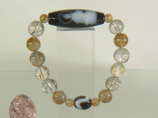 JUGEMテーマ:天然石 クリスタル パワーストーン 黒地の瑪瑙に白い蛇が描かれた天珠です。 ルチルクォーツとタイチンフラワールチルという うにのような金鉱石の塊が入ったルチルクォーツを 両サイドにつけました。 お金に関する資金とか今月末までにつけを支払わないとならない がけっぷちの方に、表と裏をひっくり返すように、ピンチをチャンス に変えるほどの力を持つ現状を打開したい方へにお勧めの天珠パワーストーン ブレスレットです。まだ間に合います。「ピン!!」ときたかたは、 ...