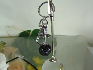 JUGEMテーマ:天然石 クリスタル パワーストーン キーホルダーの製作を依頼されました。 息子さんが最近余りに落ち込んでいるので、 それに悪いことばかり続いていて それで、コレクションボックスからオブシディアンに 六字真言が彫刻されているのをチョイス。 オン・マ・ニ・パド・メ・フンと梵字で彫られてあります。 和訳すると「蓮華の宝珠よ幸いあれ」となるそうで。 この呪文を唱えるとそれも毎日なのですが、 病魔や災難から逃れ幸運が訪れるのだそうで、 アパートの鍵をつけ...