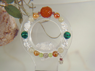 JUGEMテーマ:天然石 クリスタル パワーストーン トップのアレンジ色の石は琥珀で、蓮の花を手彫りされた もので、グリーンのマラカイトは、目にとても優しいパワーストーン ゼニアオイの植物に良く似ていることで、古来では、アイシャドウ の色素に使われたとか 色合いがオレンジとかグリーンとか使っておりまして ビタミンカラーなので、健康運アップのブレスレット として紹介いたしました。 モリオンマザーのお店はネットショップなんですが、 自宅でアトリエがございまして、近郷近...