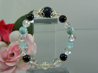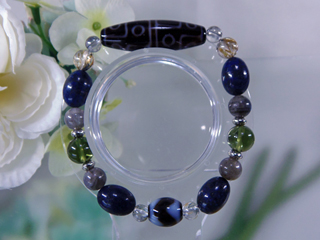 JUGEMテーマ:天然石 クリスタル パワーストーン 十二眼天珠と虎牙天珠のブレスレットです。 アイオライト・ルチルクォーツ・ラピスラズリ・ 隕石ガラスのモルダバイトで、宇宙をイメージする パワーストーンでデザインしました。