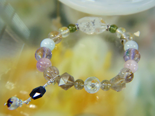 JUGEMテーマ:天然石 クリスタル パワーストーン ホランダイト鉱インクォーツは、星入り水晶と呼ばれ 水晶の中にマンガン系の鉱物が混入し星のように見える 石。強い破邪に力を持ち、不幸な事柄を寄せ付けない パワーストーンです。 星が点在するのが見えます。 マダカスカル産で現地では幸運を呼ぶおまもりとして 持つと良いことだけ寄ってくるとされています。 グリーンアパタイト・翡翠・アメトリン・モルガナイト・ ルチルクォーツなど水晶系の透き通った石でブレスレット にしまし...