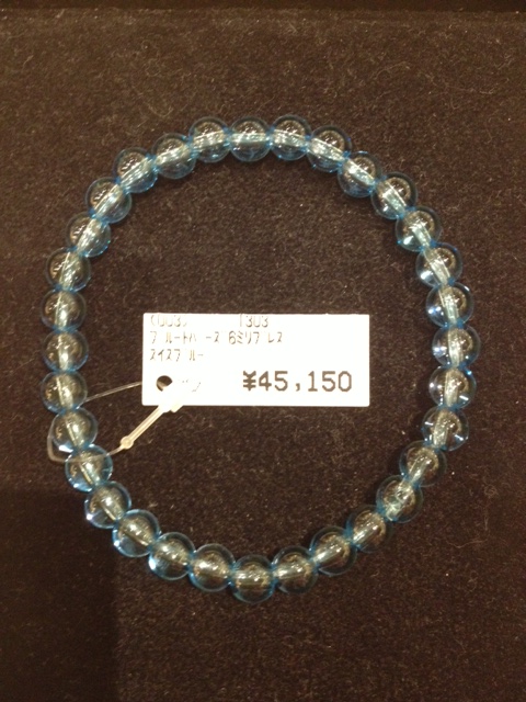 JUGEMテーマ:天然石 クリスタル パワーストーンみなさんこんにちは〜本日もスゴく暑いですねぇ〜最近、アイスがとっても美味しいですよね昨日は大好きなクーリッシュのベルギーチョコ味を食べました明日は神戸でちょっと有名な方に会えるかもしれない(?)ので、すっごく楽しみにしておりますっさて、本日は見た目が涼しげなブレスをご紹介させていただきますこちらはブルートパーズ6ミリブレス スイスブルーでございますなんと素敵なカラーネームでしょう笑お値段は¥45,150となっておりますが、実は大変お安くなるので、...
