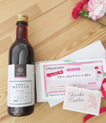 今年の母の日は何を贈ろうかな…と そろそろお考えでしょうか。 「母の日ギフト」の宣伝を見かけるようになりましたね♪ ビューティーファームズの「国産野菜の酵素ドリンク Beauty」と リラクゼーションサロン・ナチュラルガーデンさんの「マッサージやエステギフトカード」が セットになった 【母の日限定ギフトBOXセット】が期間限定で販売されます♪ ■ギフトカード 母の日限定デザインのギフト券(メッセージカード付♪)は、 ナチュラルガーデン全店(大阪・京都...