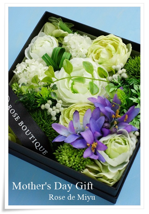 JUGEMテーマ:母の日プレゼント 岡山プリザーブドフラワー&アーティフィシャルフラワー&Le ElbonClayのお教室 Rose de Miyuです。 Mother's Day 5.10 母の日フラワーギフト もうすぐ母の日ですね! お母さんに感謝の気持ち込めて ありがとう! お花を贈ってみませんか? 上質なアーティフィシャルフラワーを使用し ホワイト&グリーン ピンク&グリーンの2色ご用意いたしました。 お花の素材 アーティフィシャルフラワー(造花) サイズ 1...