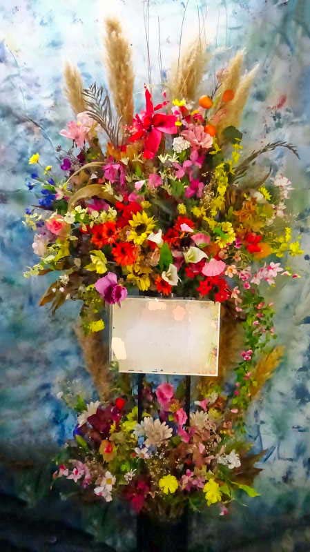 JUGEMテーマ:フラワーギフト 造花スタンド花のご注文。 ドライフラワーも入れて豪華にしました。 「広島第一劇場」今週で閉館です。 ご注文ありがとうございました。
