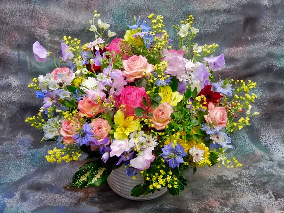 JUGEMテーマ:フラワーギフト 薔薇スプレー〕スプレーバラ〕新品種15[ピンク絞]《広島県》とくなが園芸 薔薇〕キャンディーアバランチェ[ローズ絞]《佐賀県》重 研太郎 リューココリーネ〕シリウス[青紫]《千葉県》丸朝園芸農協 スイトピー〕スーパーローズ[ピンク鮮]《広島県》呉農協沖 スイトピー〕レイトラベンダー[薄紫]《広島県》呉農協沖 デルフィニウム〕シネンシス〕SP〕プラチナブルー[水色]《高知県》土佐香美野市 アルストロメリア〕レモン[レモン]《愛知県》愛知みなみ花 ニゲラ〔クロタネソウ(黒種草)〕[ブ...