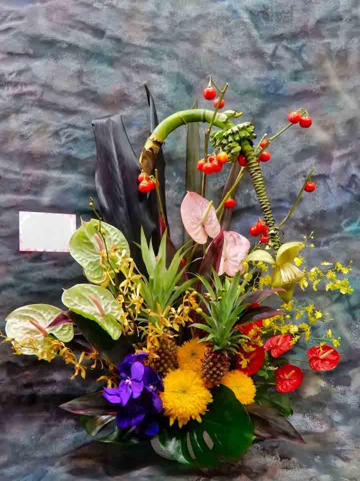 「ハワイアンの夕べ」にお届け。花キューピット加盟店様からのご注文。ご注文ありがとうございました。 南洋〕バショウ(芭蕉)の花《広島県》観大 南洋〕パイナップル〕スタールージュ《沖縄県》太陽の花 南洋〕アンスリウム〕ピスタチエ[ライトグリーン・筋ピンク]《台湾》ルージュジャパン(株) 南洋〕アンスリウム〕ローザ[ピンク]《台湾》ルージュジャパン(株) 南洋〕アンスリウム〕トロピカルレッド[赤]《台湾》翠光トップ 蘭〕バンダ〕ブルー[青紫]《台湾》翠光トップ 蘭〕オンシジューム〕ゴールデンスター[黄]《台湾》(株)ラ...