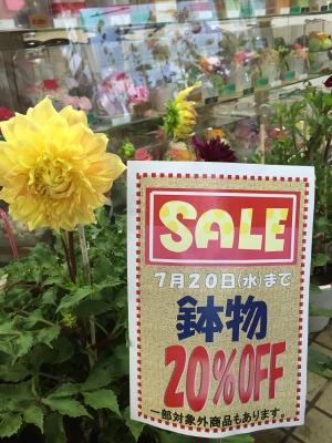 今日から7月20日まで鉢物の割引セールを始めます!! 【 割引セール 】 ダリアも・・・ 【 割引セール 】 大きなアジサイも・・・ 【 割引セール 】 観葉植物も・・・ 小ぶりな胡蝶蘭も20%OFF対応商品ございます♪ いっきに20%OFF!!!!のビックチャンス! 早いもの勝ちですので この機会にぜひ、欲しかった鉢物をお求めください。 JUGEMテーマ:フラワー...