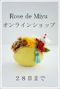 JUGEMテーマ:お正月飾り JUGEMテーマ:習い事・資格・講座 JUGEMテーマ:ネットショップ JUGEMテーマ:お花のある暮らし JUGEMテーマ:フラワースクール こんにちは Rose de Miyuです。 クリスマスも終わりお正月準備をされていることでしょう〜 年末年始の贈り物はおきまりでしょうか? Rose de Miyuのオンラインショップでは お正月飾りをとり揃えておりますのでどうぞ...