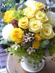 秋色アジサイを入れて。 もうそろそろ秋も終わりですね。 ・・・・・・・・・・・・・・・・ クリスマスワンデイレッスンのお知らせ 手作りのフレッシュリースを作ります。 御参加お待ちしております! 詳しくはこちら→ ★ ・・・・・・・・・・・・・・・・ harukina facebook JUGEMテーマ:フラワーギフト