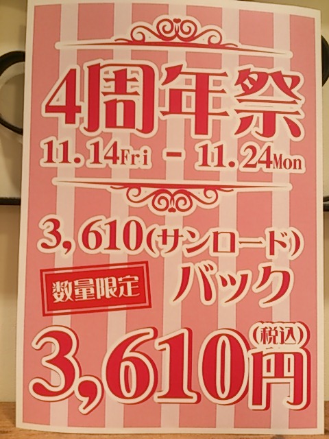JUGEMテーマ:パワーストーンブレスレットJUGEMテーマ:鉱石鉱物JUGEMテーマ:パワーストーンJUGEMテーマ:天然石ビーズJUGEMテーマ:本日のおすすめ ド近眼たなはしですこんばんは。コンタクトレンズ外したらのびた君並みに両目が「3 3」←こんなんです。突然ですが、来る11/19(水)でサンロード店4周年を迎えます!これもひとえに皆様のご愛顧のたまものです!心より御礼申し上げますということで皆様への感謝のしるしに、、、4周年祭開催決定しました!!!石の日の11/14(金)から11/24(月・祝)の11日間...