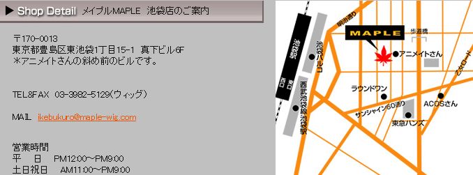 ご無沙汰してます!えくしぃちゃん(店長)です♪ すでにTwitterでもお知らせいたしましたが、改めて。。。 先月よりウィッグショップのMAPLE池袋店様にて、我々EXCの衣装を店頭販売して頂けることになりました〜。 パチパチパチ〜 通販だと写真でしかご紹介できないところ、MAPLE様のご協力により、実際手に取ってご覧いただける機会がたくさん増えたことにスタッフ一同喜びを感じております〜(*^▽^*) お店の展示様子はこんな感じです。とっても素敵に飾っていただい...