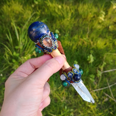 JUGEMテーマ:パワーストーン こんばんは^^ 本日2つ目の記事です。 こちらも、オーダー品となっております。 新作のワンドです。 霊性の杖と名付けました。 ・全体の長さ…15.1cm ・スフィアの大きさ…3cm ・ポイント部分の長さ…見える部分で4.8cm ・飾りと致しまして、ブラックトルマリンインクォーツカボション、マラカイ10mm、ムーンストーン8mm、 カイヤナイト10mm、クラック4mm、ガーネッ...