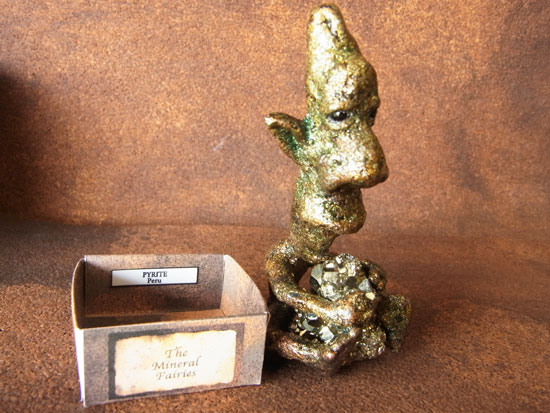 JUGEMテーマ:パワーストーン 昨年からチビチビと制作を進めていたパイライトを抱えたの鉱物妖精の標本が完成いたしました。 かなり無理がありますが、鉱石の標本用の箱に座れます。 小さな物語がセットになっています。近いうちに販売しますね。 →その他の鉱物妖精標本。