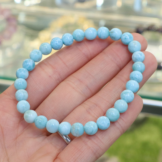 カリブ海に浮かぶドミニカ共和国で産出される天然石、ラリマーのブレスレットでございます。ライトブルーカラーが魅力で、上品で控えめな約6ミリ玉サイズですので女性の方にお勧めでございます。 『約6ミリ ラリマー ブレスレット』 販売価格32,400円(税込) JUGEMテーマ:パワーストーン