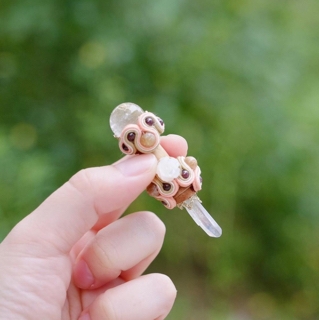 JUGEMテーマ:パワーストーン こんにちは^^ 1つ目はとってもとっても小さなワンドです。 お財布をしまっているときに、上にチョコンと乗せて お財布を浄化する用の小さなアイテムが作りたいなと思って 完成した子です。 なので、名前もお財布と共にタリスマンと名付けました。 ・全体の長さ…6.5cm ・スフィアの大きさ…1.4cm ・ポイント部分の長さ…見える部分で2cm ・飾りと致しまして、アラゴナイト6mm、ガーネット3mm、マザ...