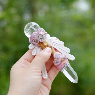 JUGEMテーマ:パワーストーン こんばんは^^ 本日は新作のワンドのご紹介です。 ローズワンドと名付けました。 こちらはオーダー品となっております。 オーダーくださいまして、誠にありがとうございます。 ・全体の長さ…14.8cm ・スフィアの大きさ…3cm ・ポイント部分の長さ…見える部分で4.7cm ・飾りと致しまして、ローズクォーツ8mm、ムーンストーン6mm、ラベンダーカルセドニー4mm、 ホワイトアゲー...