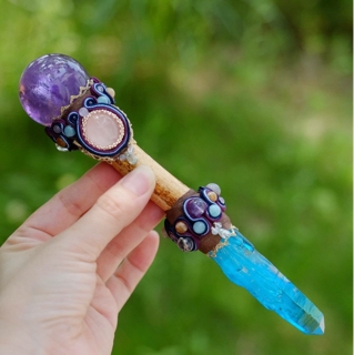 JUGEMテーマ:パワーストーン こんばんは^^ 本日は新作のワンドのご紹介です。 こちらはオーダー品となっております。 オーダーくださいまして、誠にありがとうございます。 2人のワンドと名付けました。 ・全体の長さ…20.5cm ・スフィアの大きさ…3.6cm ・ポイント部分の長さ…見える部分で7cm ・飾りと致しまして、ローズクォーツカボション、アメジスト8mm、アイスアマゾナイト6mm、 ...