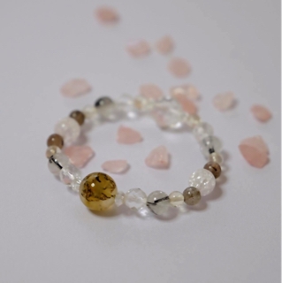 JUGEMテーマ:パワーストーン こんにちは^^ では、順にアップさせて頂きます。 先ずはブレスレットのご紹介です。 人との深き関わりのお守り、という名前を付けました。 使用しました石… ・デントリティッククォーツ14mm ・水晶128面体カット13mm、8mm ・ブラックルチルクォーツ8mm ・スーパーセブン6mm ・シトリン6mm ・水晶ボタンカット ・クラック水晶12mm サイズは16cmです。 変更可能ですので、ご希望の際はお申...