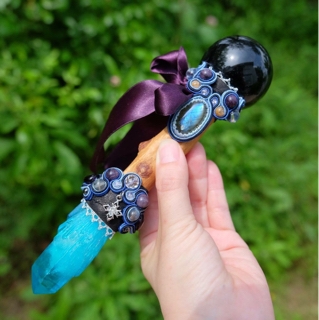 JUGEMテーマ:パワーストーン こんにちは^^ 今日は、この日に発表したかった、 オーダー頂きましたワンドをご紹介させて頂きます。 魔女のワンドと名付けました。 ・全体の長さ…21.2cm ・スフィアの大きさ…4.5cm ・ポイント部分の長さ…見える部分で6.1cm ・飾りと致しまして、ラブラドライトカボション、スギライト8mm、ラブラドライト6mm 水晶128面カット8mm、水晶8mm、アラゴナイト6mm、ヘマタイト4mm パープルフローライト...