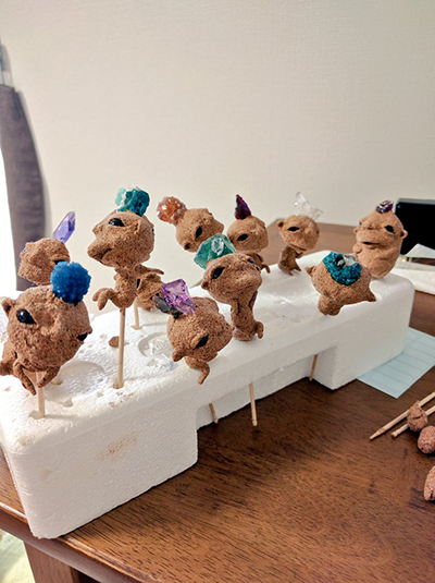 JUGEMテーマ:パワーストーン 沖縄に接近した台風のおかげで、内側に向かった創作意欲がさまざまな鉱物妖精達を産み出しました。 頭の上が一丁前の鉱物標本となっていおります。 体を持ってしまったがために、もうショーケースへはもどれない、カバンサイト(インド)とダイオプテーズ(ロシア)の妖精 上の暗号はミネラルの数式 こんなに小さいんですよ。 近日販売予定...
