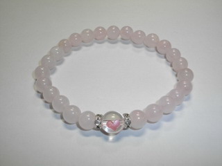 久しぶりにパワーストーンブレスレットのご紹介です。 ローズクォーツのブレスレットです。 6mmのローズクォーツで、 真ん中に8mmのハートが彫刻されたクリスタルクォーツと その両側にメタルビーズを入れました。 ローズクォーツは、愛と美を司る石です。 女性らしさ、愛情、優しさ、美しさを高めてくれます。 出会い、結婚を望む人、恋人と愛を深めたい人は是非持っていたい石です。 自分を愛する気持ちも高めてくれるので、 自分に自信がない人、恋愛に臆病になっている人にもおすすめです。 癒...