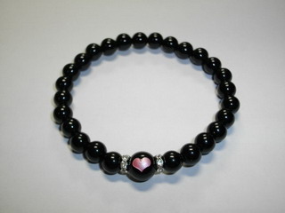 ブラックオニキスのブレスレットです。 6mmのブラックオニキスで、 真ん中に8mmのピンクのハートが彫刻されたブラックオニキスと その両側にメタルビーズを入れました。 昨日ご紹介したローズクォーツのブレスレットと同じデザインです。 ブラックオニキスのブレスレットはかわいらしいデザインがないので、 ピンクのハートのついた石のブレスレットを作りました。 オニキスは古くから魔よけの護符として用いられてきました。 マイナスのエネルギーをプラスに転換すると言われています。 凶方位に行く...