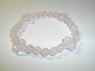 ローズクォーツのブレスレットです。 6mmのローズクォーツの四方に 12mmの四弁の花の形のローズクォーツを入れました。 ローズクォーツは、愛と美を司る石です。 女性らしさ、愛情、優しさ、美しさを高めてくれます。 出会い、結婚を望む人、恋人と愛を深めたい人は是非持っていたい石です。 自分を愛する気持ちも高めてくれるので、 自分に自信がない人、恋愛に臆病になっている人にもおすすめです。 癒しのパワーもあるので、失恋で傷ついている人、 恋愛に疲れている人にもよいです。 四方と四弁...